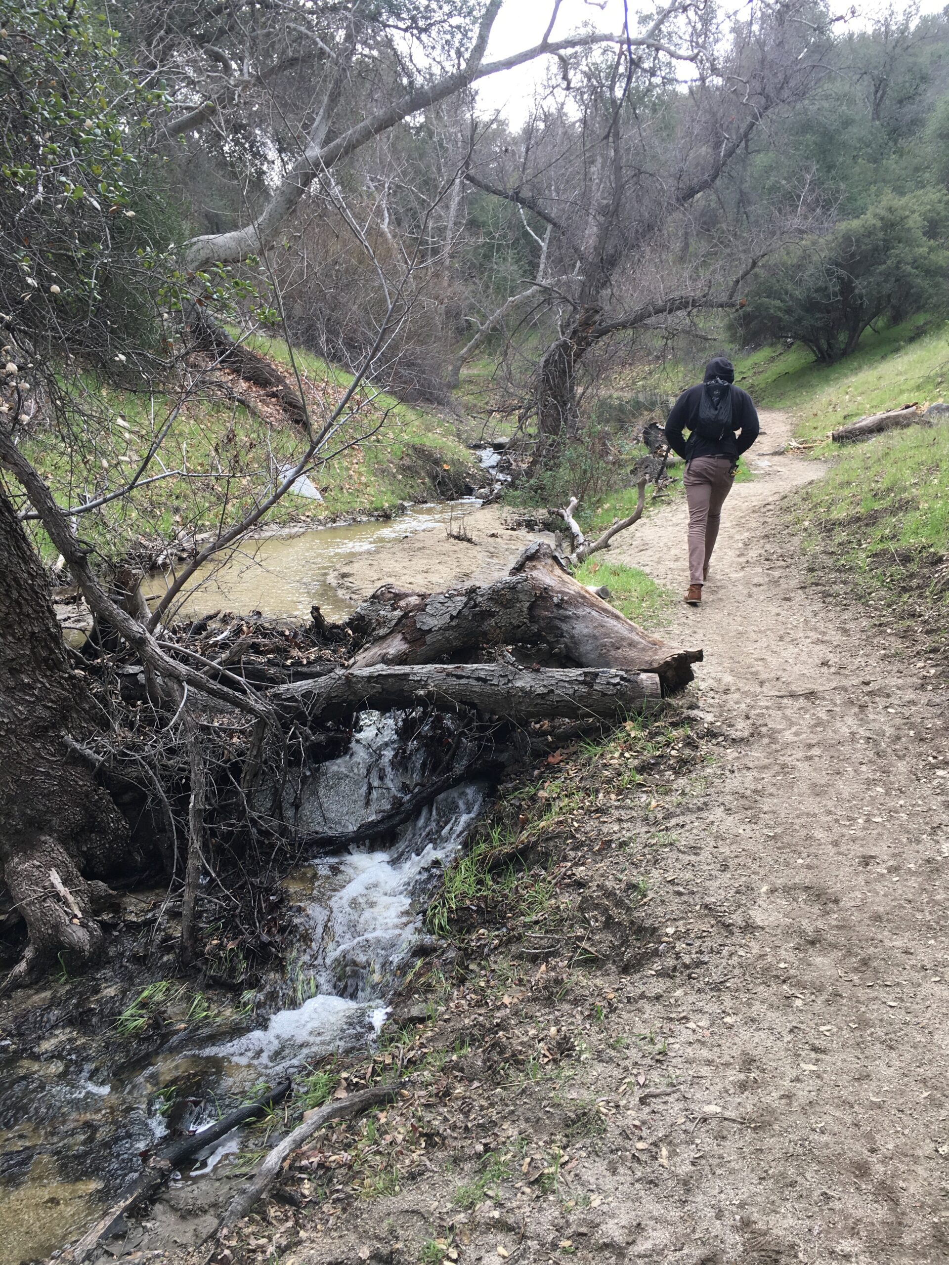 From the trailhead start, follow the well-marked PCT signs south and east up Canada Verde Creek, which on this day was full of fast flowing water. The trail to the “Rock” is approximately 3.5 miles and in the beginning cuts through a forested woodland of huge old coast live oaks engulfing you along the trail.