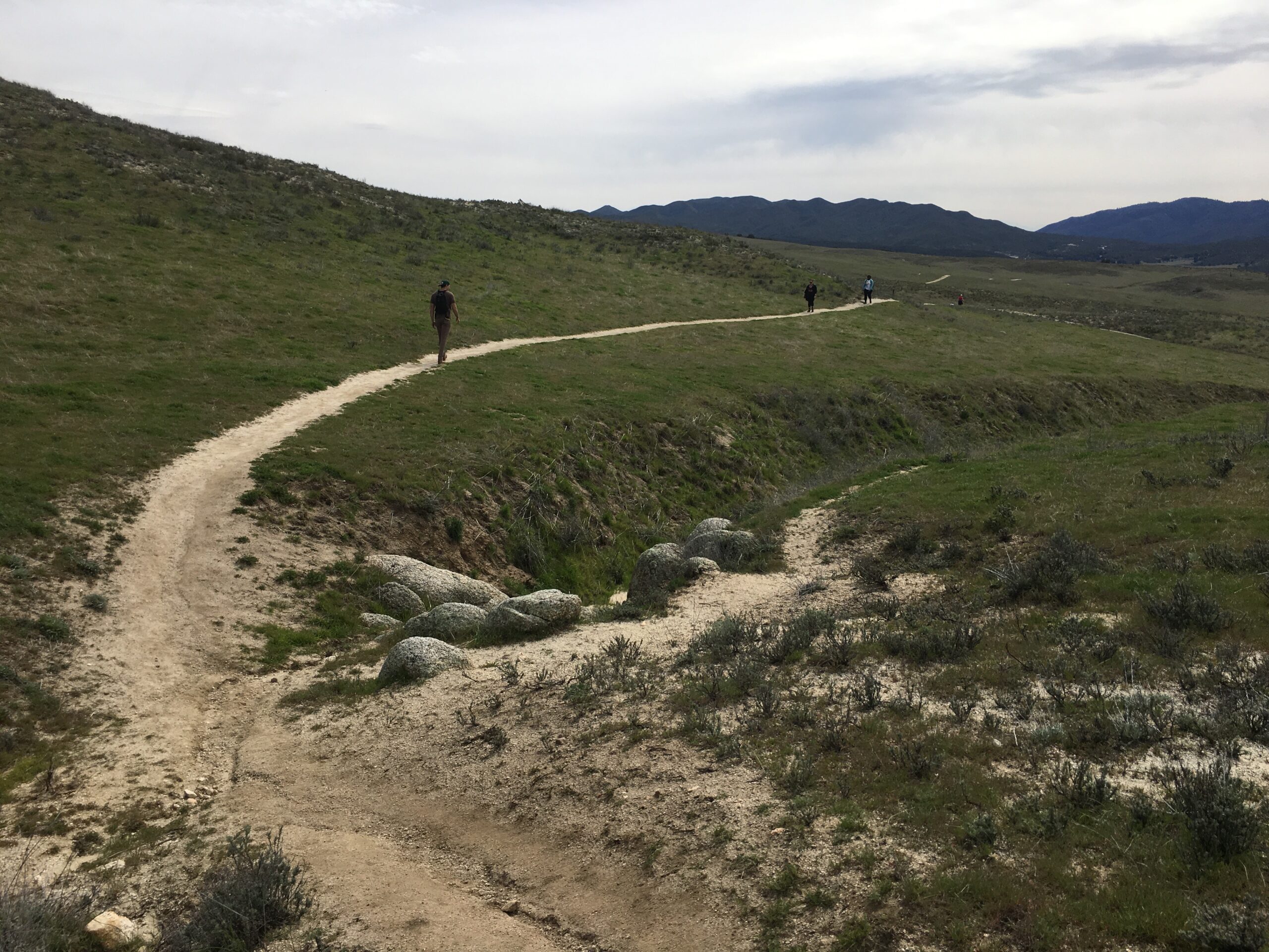 The trail climbs rising above the creek and opens up to what you would expect the Pacific Crest Trail to look like, lots of open spaces surrounded by rolling hills and the distant mountains of the local area. As you near the half-way point of this trail, the landscape becomes more desert like with low lying vegetation, cactus, chaparral and brush.