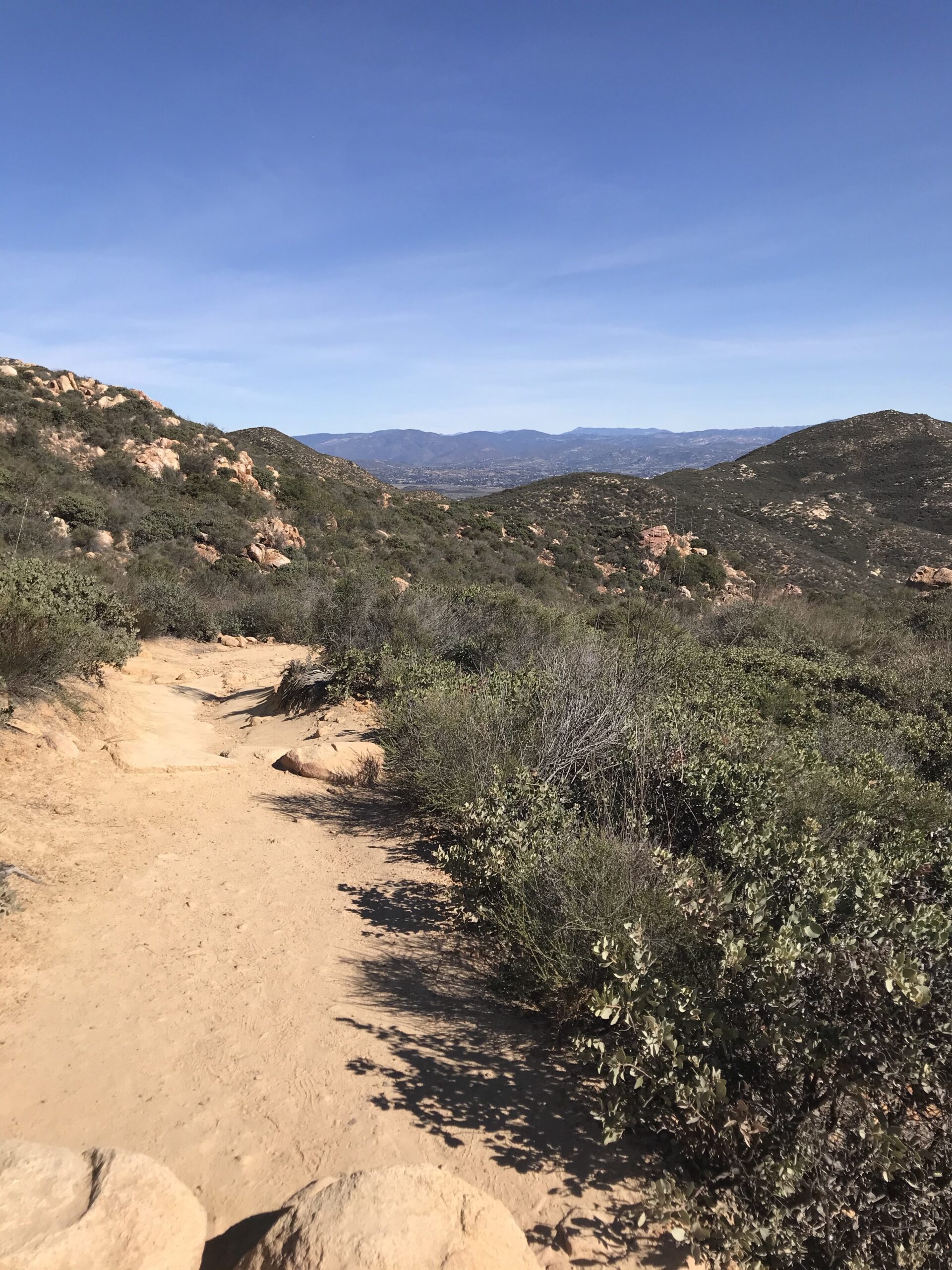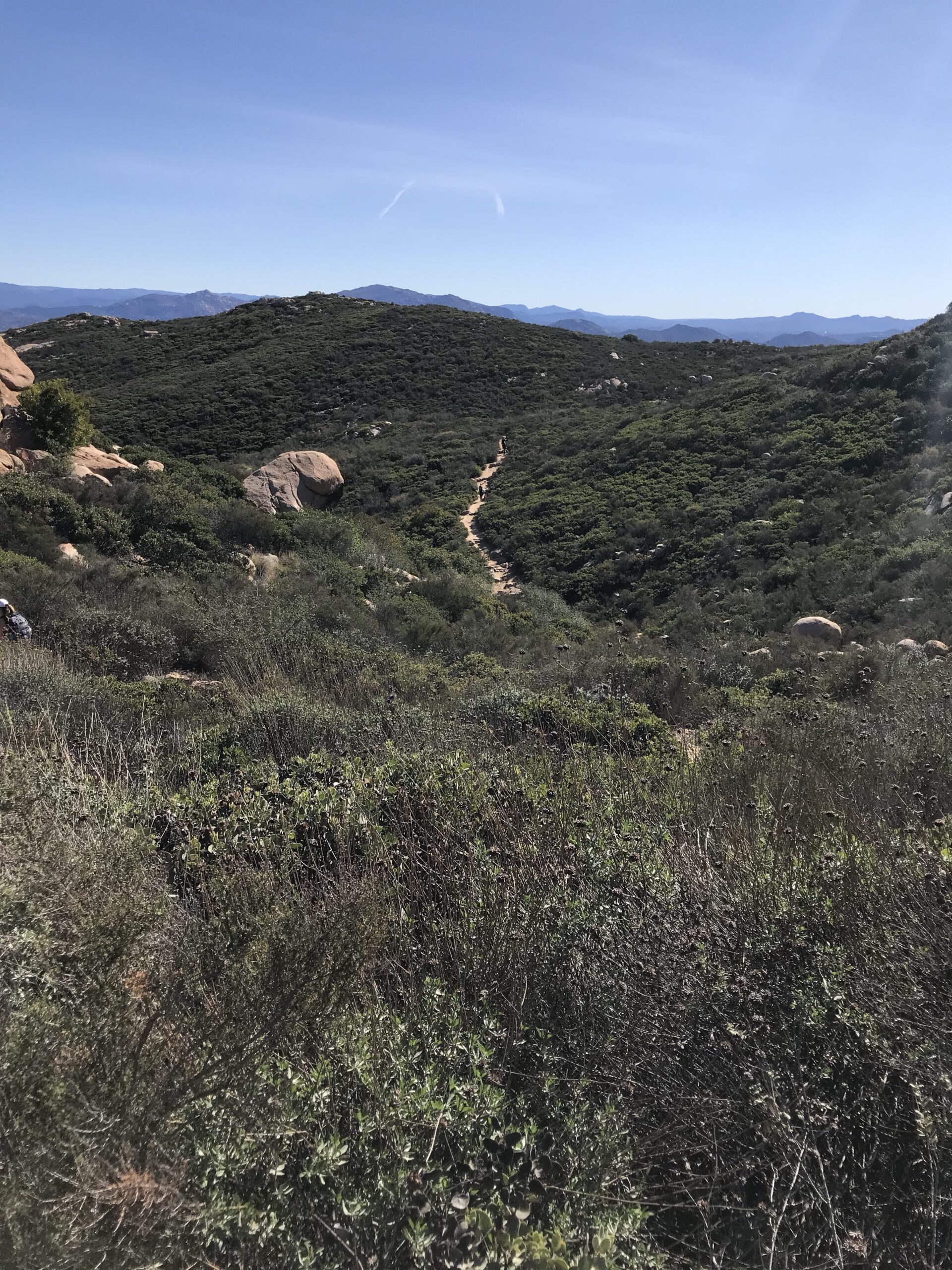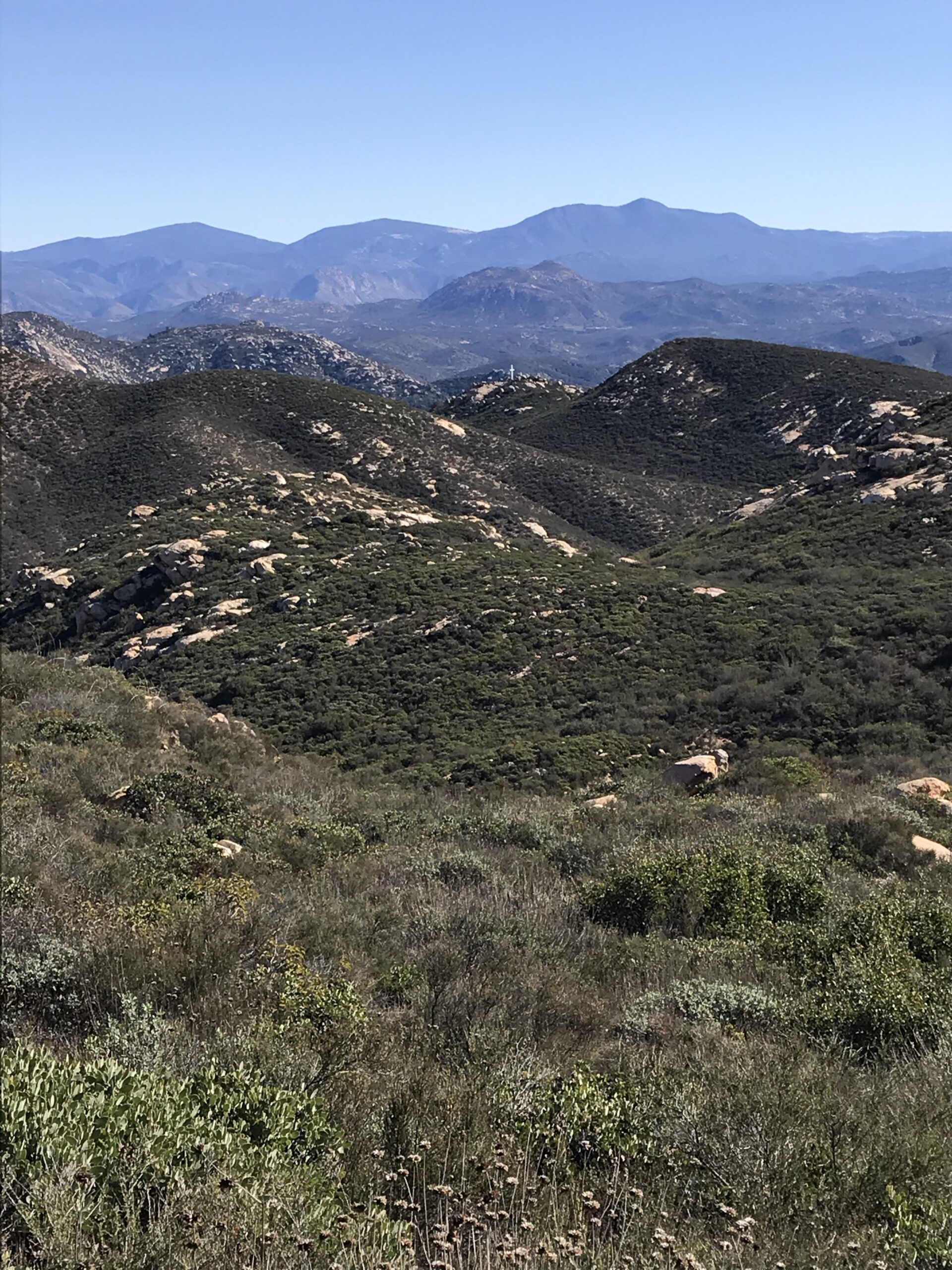 The highlights of this hike begin at this stage of the hike. The incredible scenic views east of the Ramona foothills and the surrounding area of Julian, CA are breathtaking. Be sure you keep your eyes peeled for the ‘white cross’ tucked into the eastern mountainous landscape as you start to ascend.