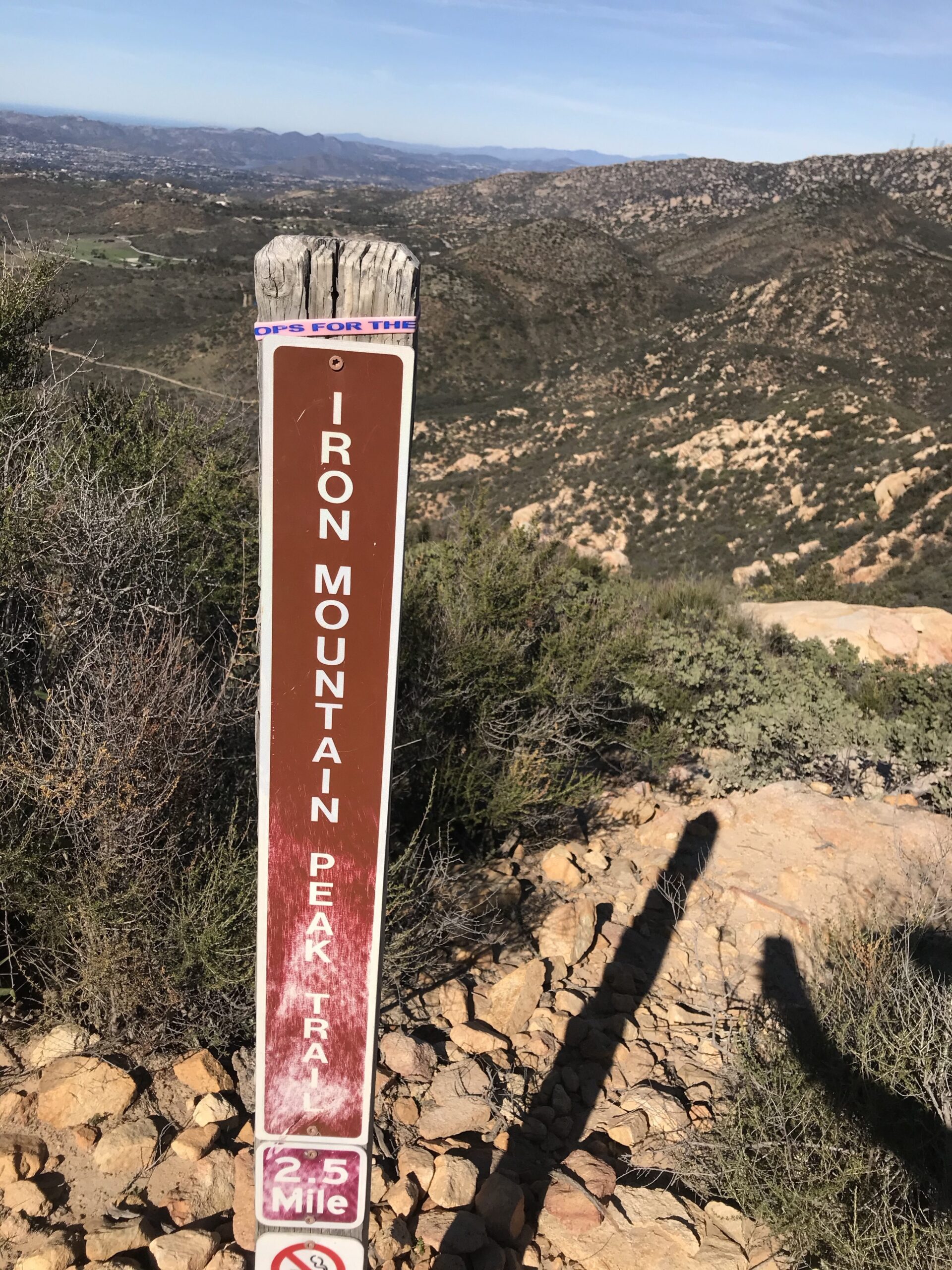 Each leads to the other and the same ascending single trail route to the peak. At the 1.5 mile mark, you will come to the mileage board indicating directions to key points along the way including the summit of Iron Mt.