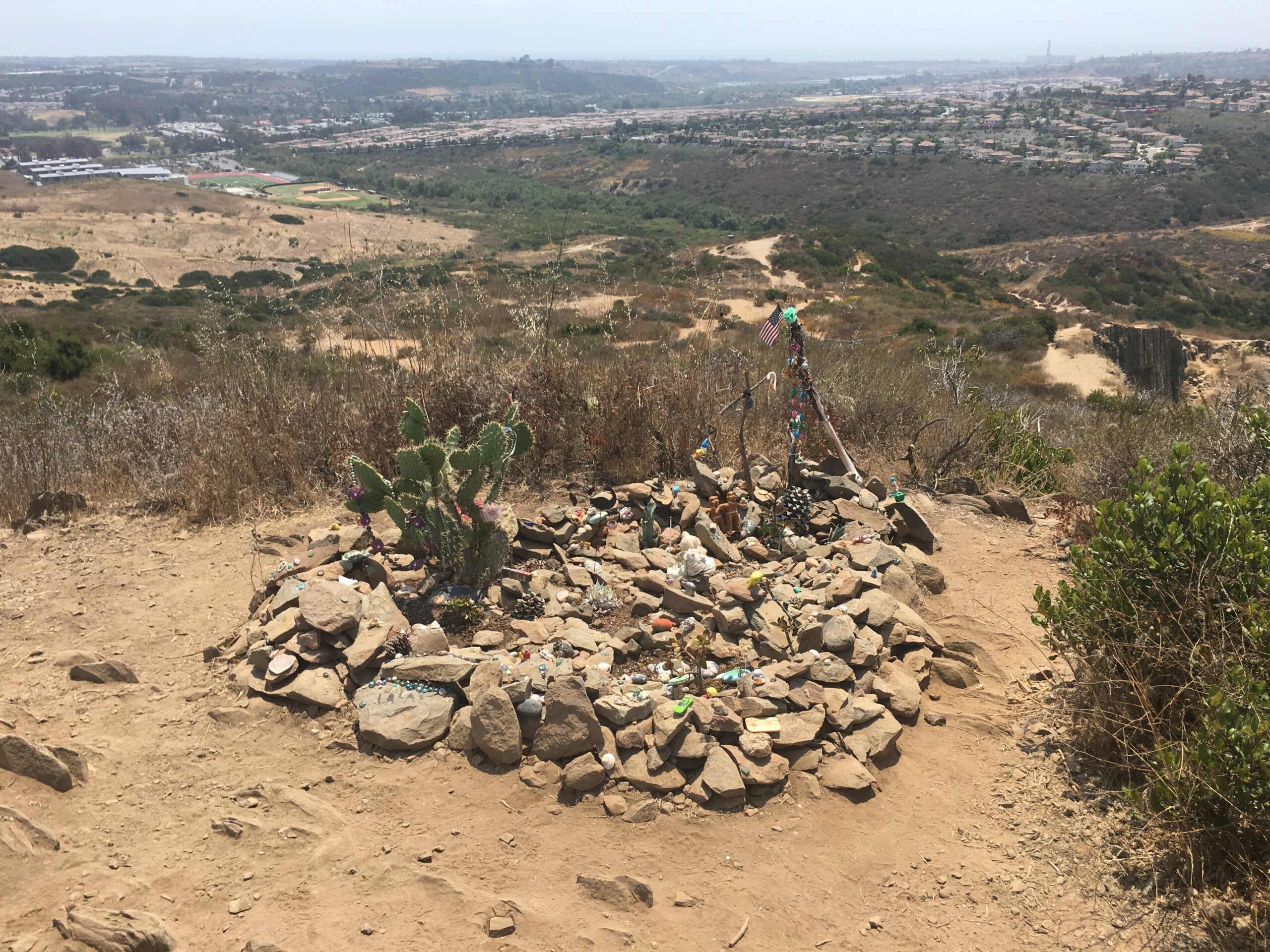 As you meander around the Summit you will come to the “Trinket Garden’ a nice memorial and keepsake place for the many who have hiked these trails. Looking down into the bowl you will see a Labyrinth, which is a maze offering yet more diversity to this Hike.