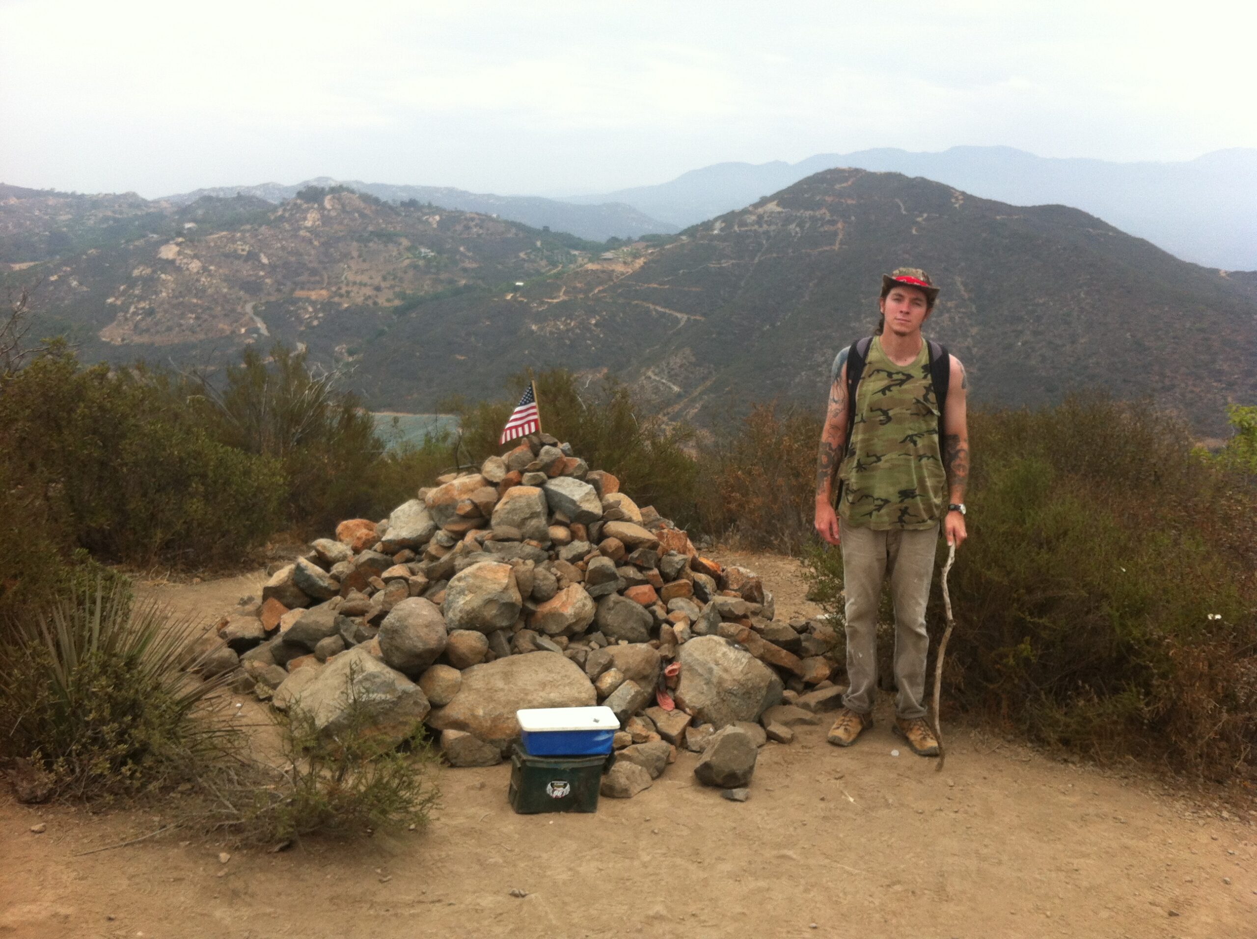 On this day the haze and marine layer kept us from seeing the Ocean and some distant mountain ranges, but even with that you still could het a good sense of the vast openness, mountains and green avocado orchards this part of our county geographically consists of.As you continue the ascent the trail twists and you will come to an arrow made of small rocks, trusts its direction and you will soon be at the summit.