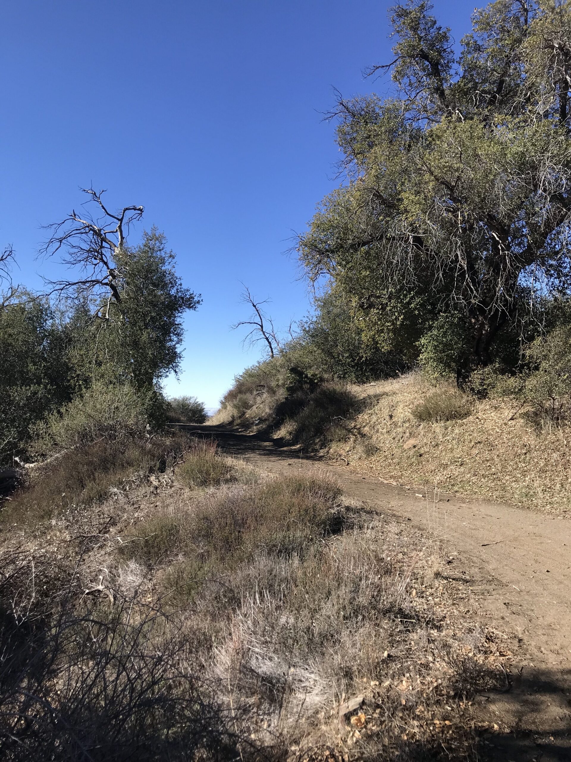 There is an alternative trail which branches off of the Fire Road called Upper Descanso Creek Trail which links in about .6 mi from the trail head start point and in fact is the trail we took down from the Peak.     Upper Descanso Creek Trail will link you into the Oakzanita Trail.  Taking this way up is a much steeper ascent but does knock of nearly .75 mile off the hike.  Thus if you took this section up and back your hike would be about 1.5 miles less in distance than doing the Fire Road out and back.