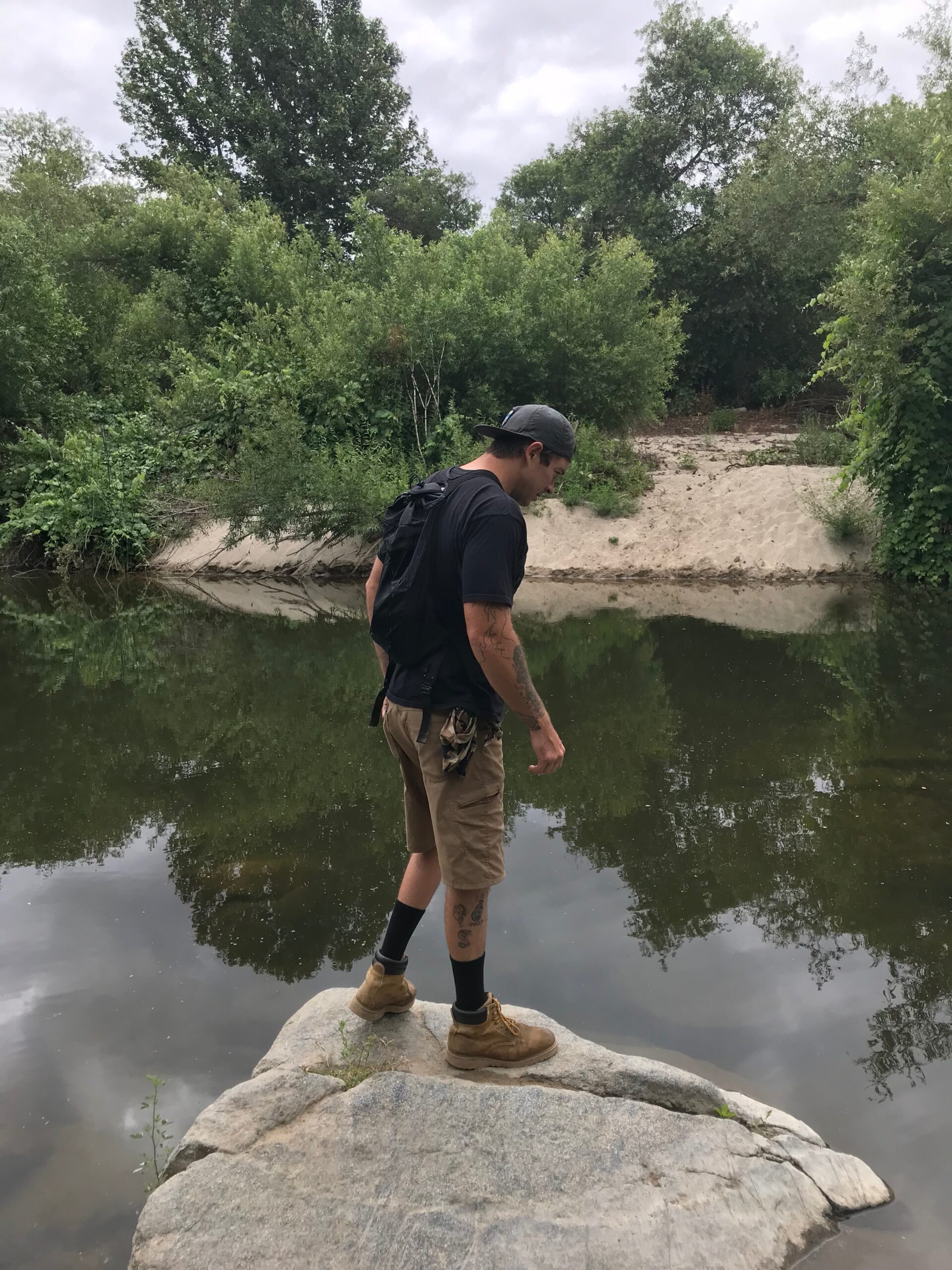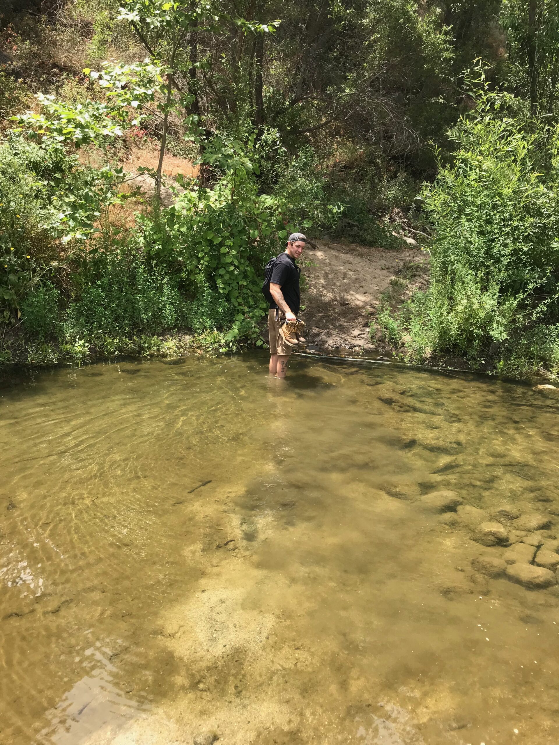 On the way back we had to find a narrow area of the river so the we could cross. We eventually picked a spot that wasn’t too deep, took off our boots, rolled up out pants, and made the adventurous crossing, bare foot and all. The river is clear, clean nd cooling on the feet.